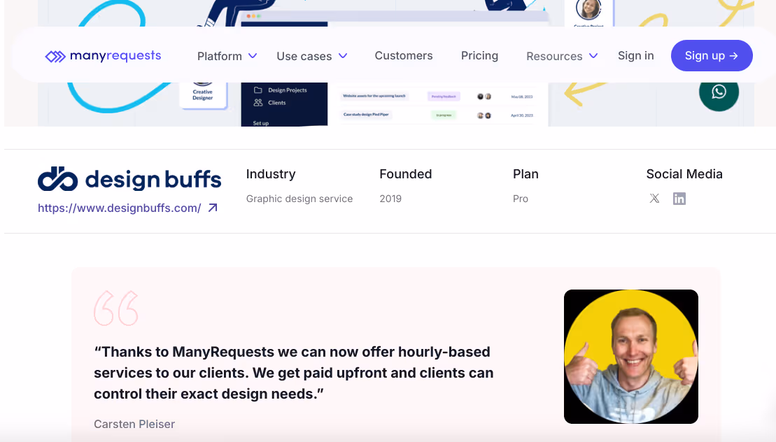 At ManyRequests, we use case studies through our Customer Stories section to showcase how agencies have successfully streamlined their operations and achieved business growth using our platform.
